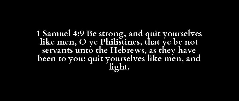 1 Samuel 4:9 Be strong, and quit yourselves like men, O ye Philistines, that ye be not servants unto the Hebrews, as they have been to you: quit yourselves like men, and fight.