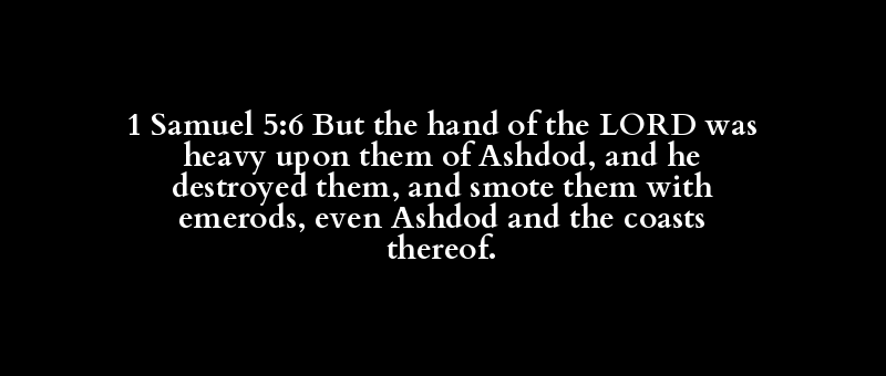 1 Samuel 5:6 But the hand of the LORD was heavy upon them of Ashdod, and he destroyed them, and smote them with emerods, even Ashdod and the coasts thereof.