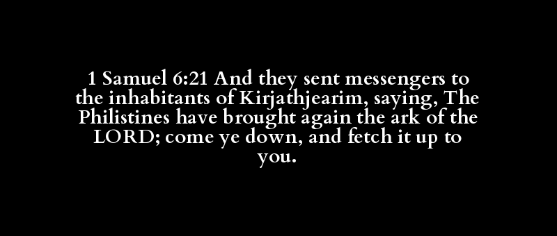 1 Samuel 6:21 And they sent messengers to the inhabitants of Kirjathjearim, saying, The Philistines have brought again the ark of the LORD; come ye down, and fetch it up to you.