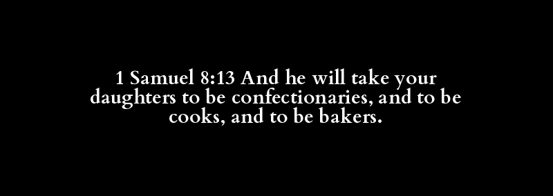 1 Samuel 8:13 And he will take your daughters to be confectionaries, and to be cooks, and to be bakers.