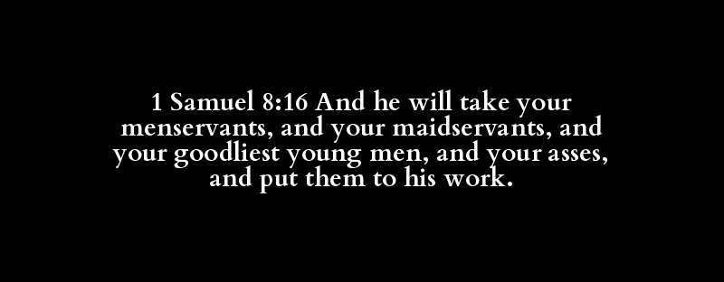 1 Samuel 8:16 And he will take your menservants, and your maidservants, and your goodliest young men, and your asses, and put them to his work.