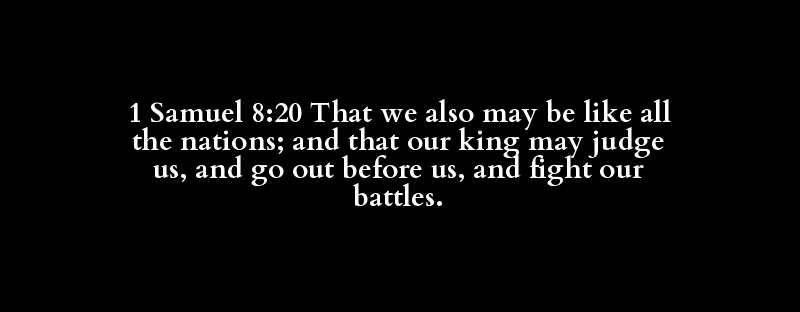 1 Samuel 8:20 That we also may be like all the nations; and that our king may judge us, and go out before us, and fight our battles.