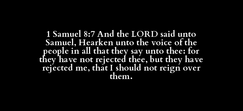1 Samuel 8:7 And the LORD said unto Samuel, Hearken unto the voice of the people in all that they say unto thee: for they have not rejected thee, but they have rejected me, that I should not reign over them.