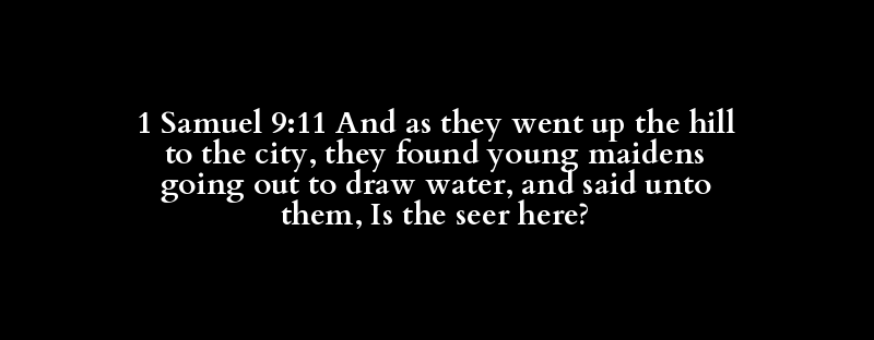 1 Samuel 9:11 And as they went up the hill to the city, they found young maidens going out to draw water, and said unto them, Is the seer here?