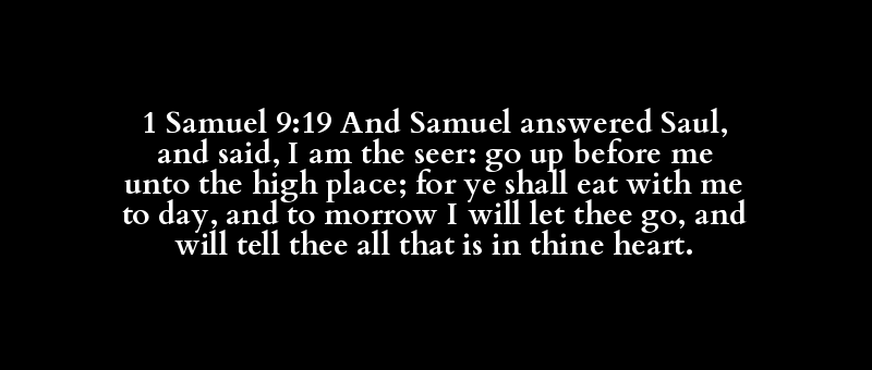 1 Samuel 9:19 And Samuel answered Saul, and said, I am the seer: go up before me unto the high place; for ye shall eat with me to day, and to morrow I will let thee go, and will tell thee all that is in thine heart.