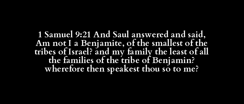 1 Samuel 9:21 And Saul answered and said, Am not I a Benjamite, of the smallest of the tribes of Israel? and my family the least of all the families of the tribe of Benjamin? wherefore then speakest thou so to me?