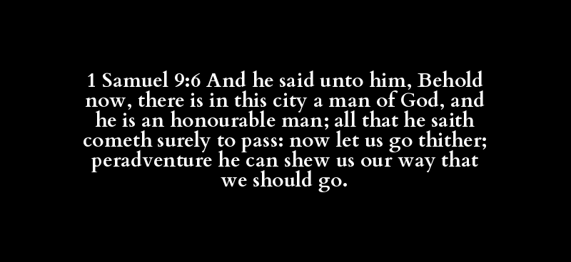 1 Samuel 9:6 And he said unto him, Behold now, there is in this city a man of God, and he is an honourable man; all that he saith cometh surely to pass: now let us go thither; peradventure he can shew us our way that we should go.