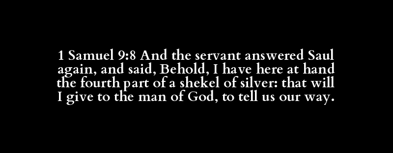 1 Samuel 9:8 And the servant answered Saul again, and said, Behold, I have here at hand the fourth part of a shekel of silver: that will I give to the man of God, to tell us our way.